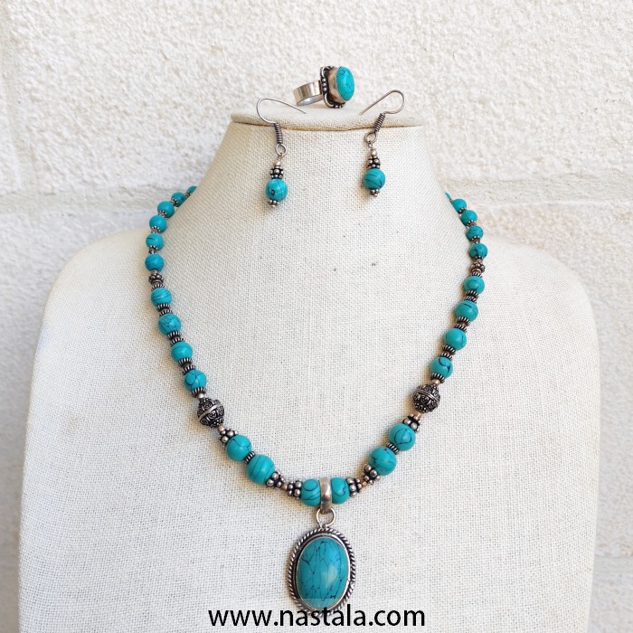 طقم عقد وخاتم وقرط من الفيروز صناعه يدوية قديم