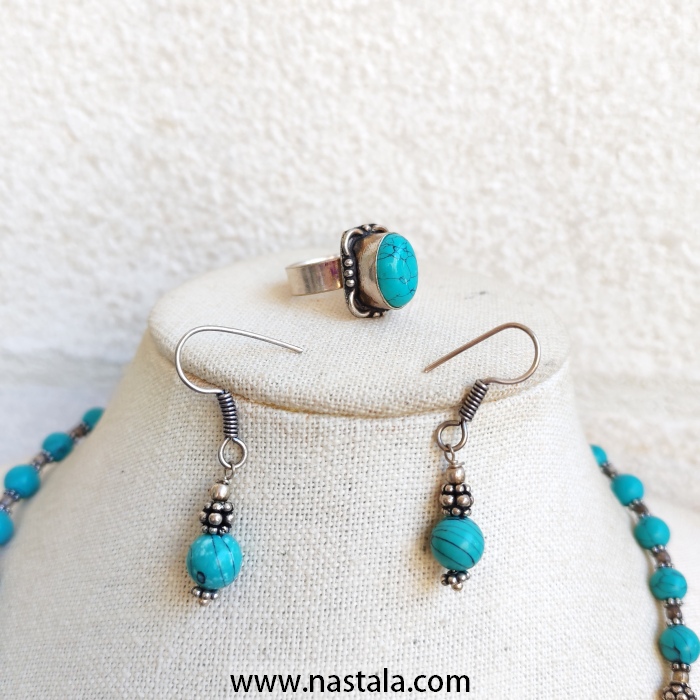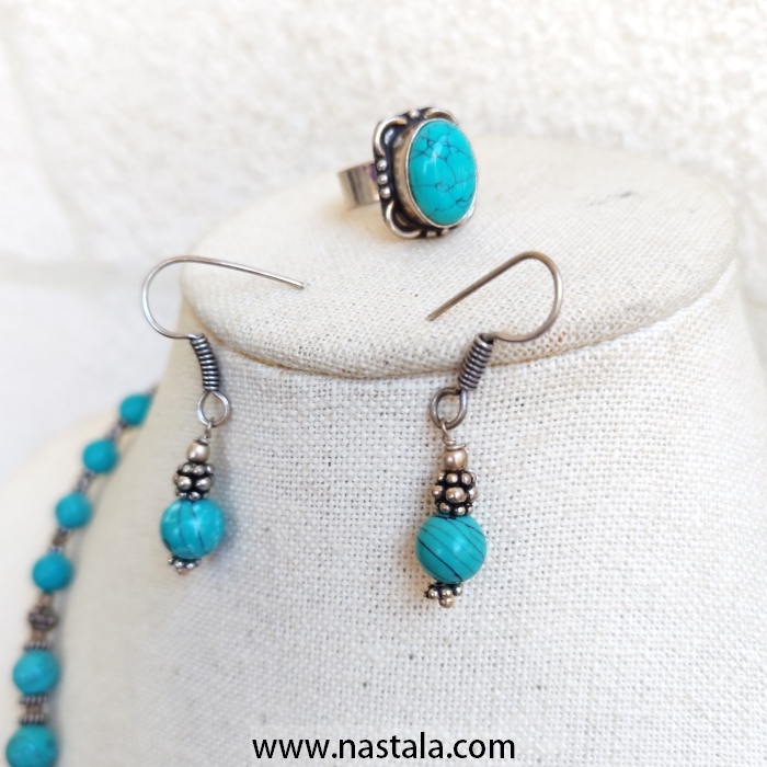 / طقم عقد وخاتم وقرط من الفيروز صناعه يدوية قديم