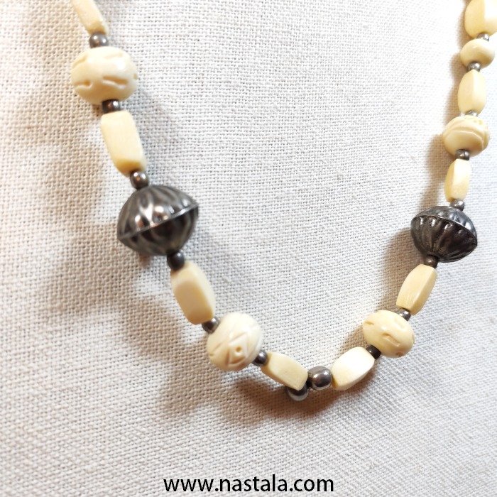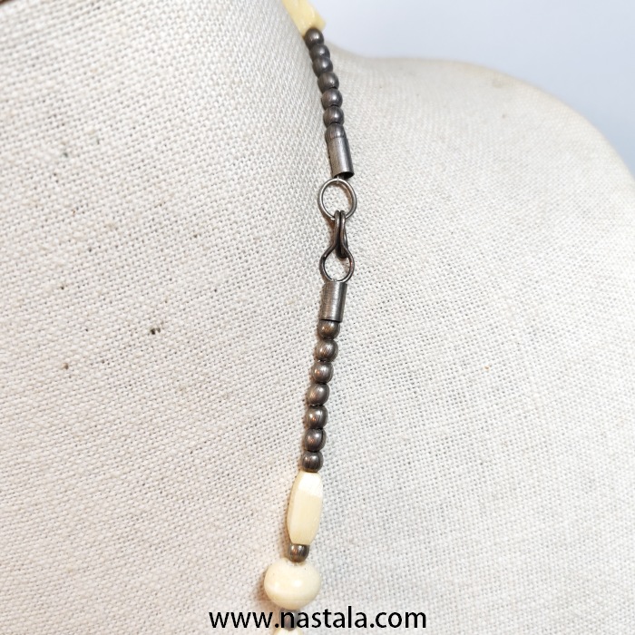 antiqued brass and copper plates connect below the collar.Features an adjustable clasp closure