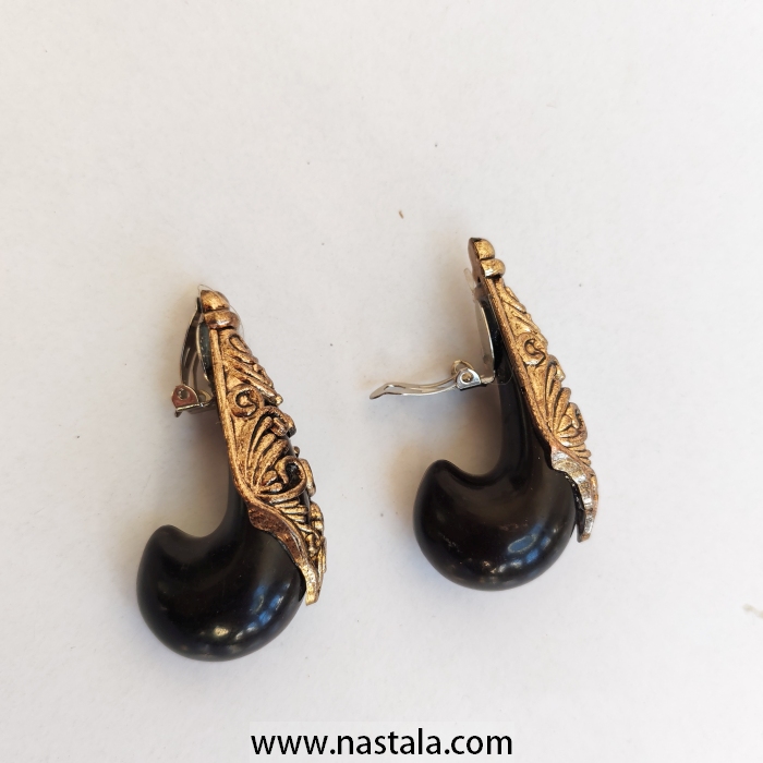 Vintage Statement BOHO orange and blue painted wood domed bangle bracelet with flowers and leaves