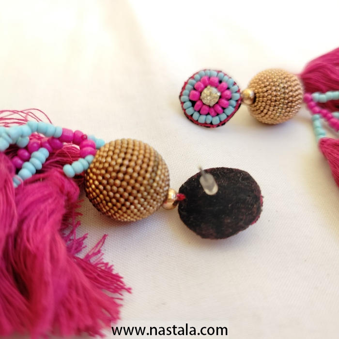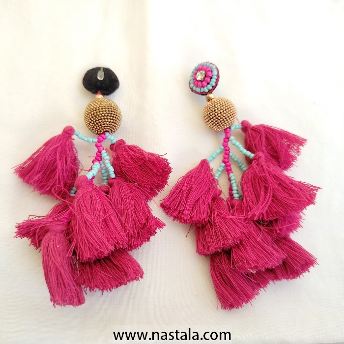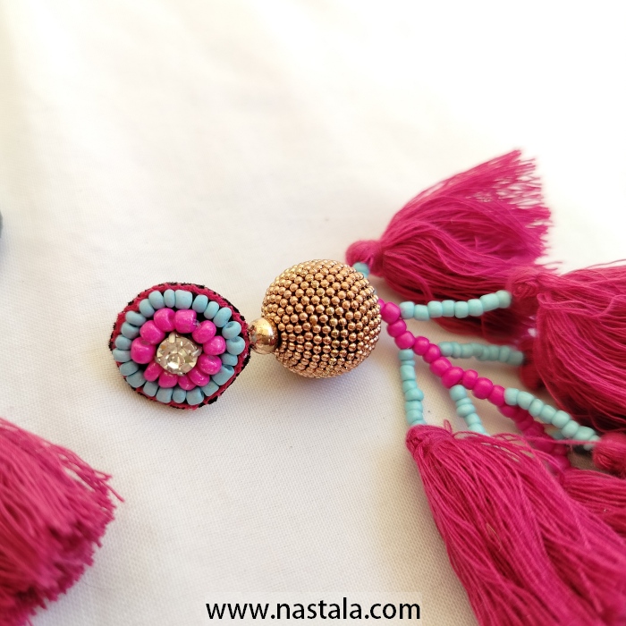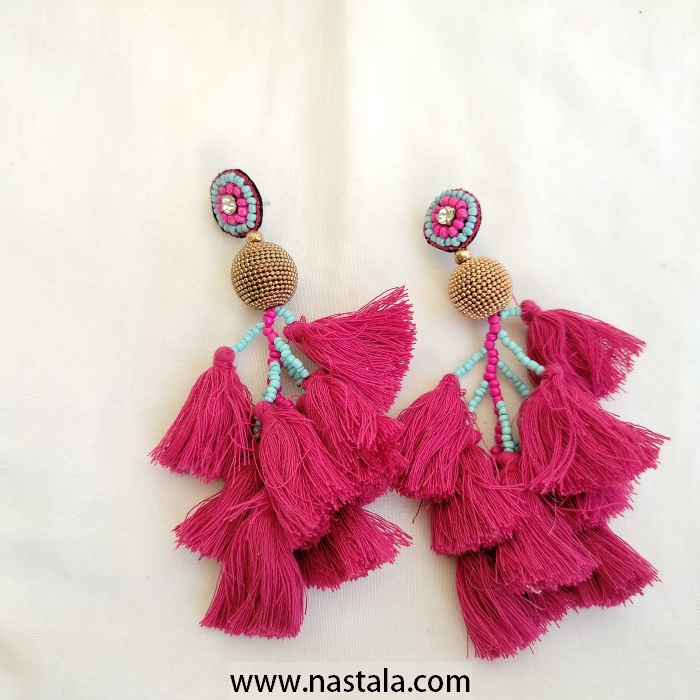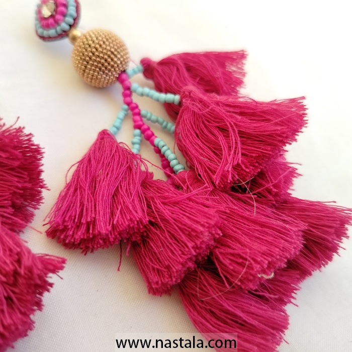 / A pair of vibrant tassel earrings with colorful beads | أقراط مع شرابات ملونة وخرز بألوان زاهية