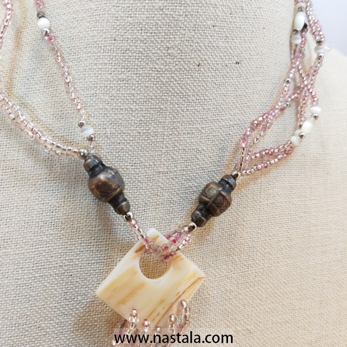 antiqued brass and copper plates connect below the collar.Features an adjustable clasp closure