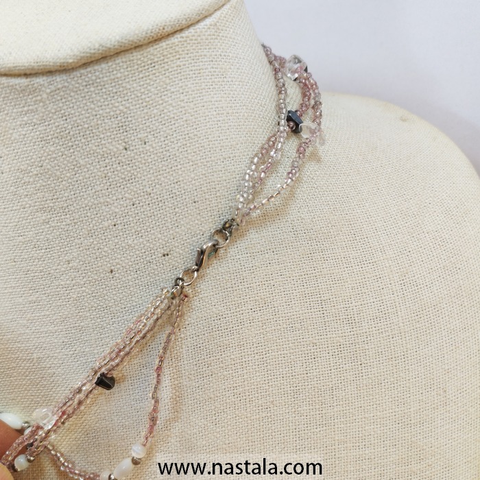 Black Flower Pendant Necklace with Sheer Ribbon – قلادة مع قلادة زهرة سوداء وحبل شفاف