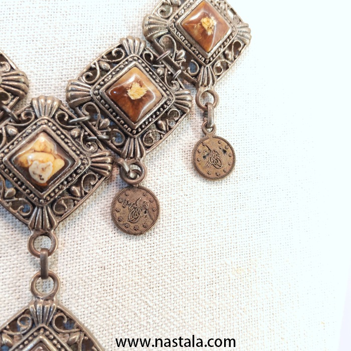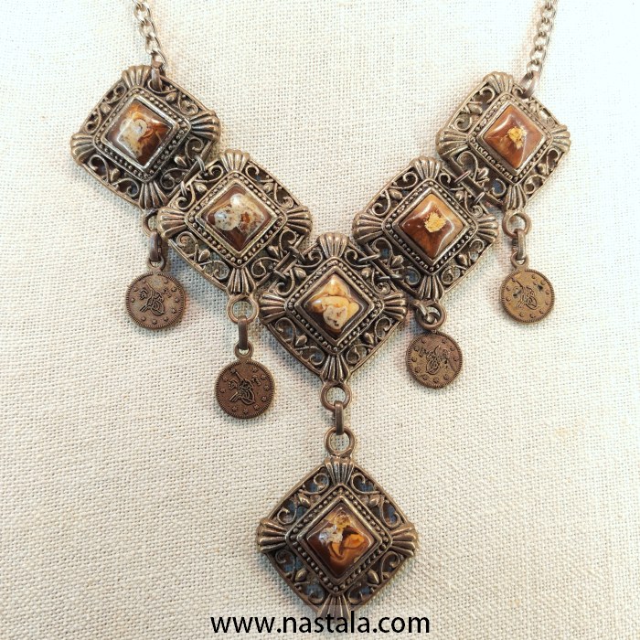 White and yellow Multi layers beads with hammer metal silver pendant 16in