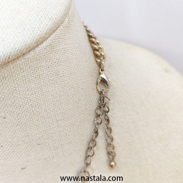 White and yellow Multi layers beads with hammer metal silver pendant 16in